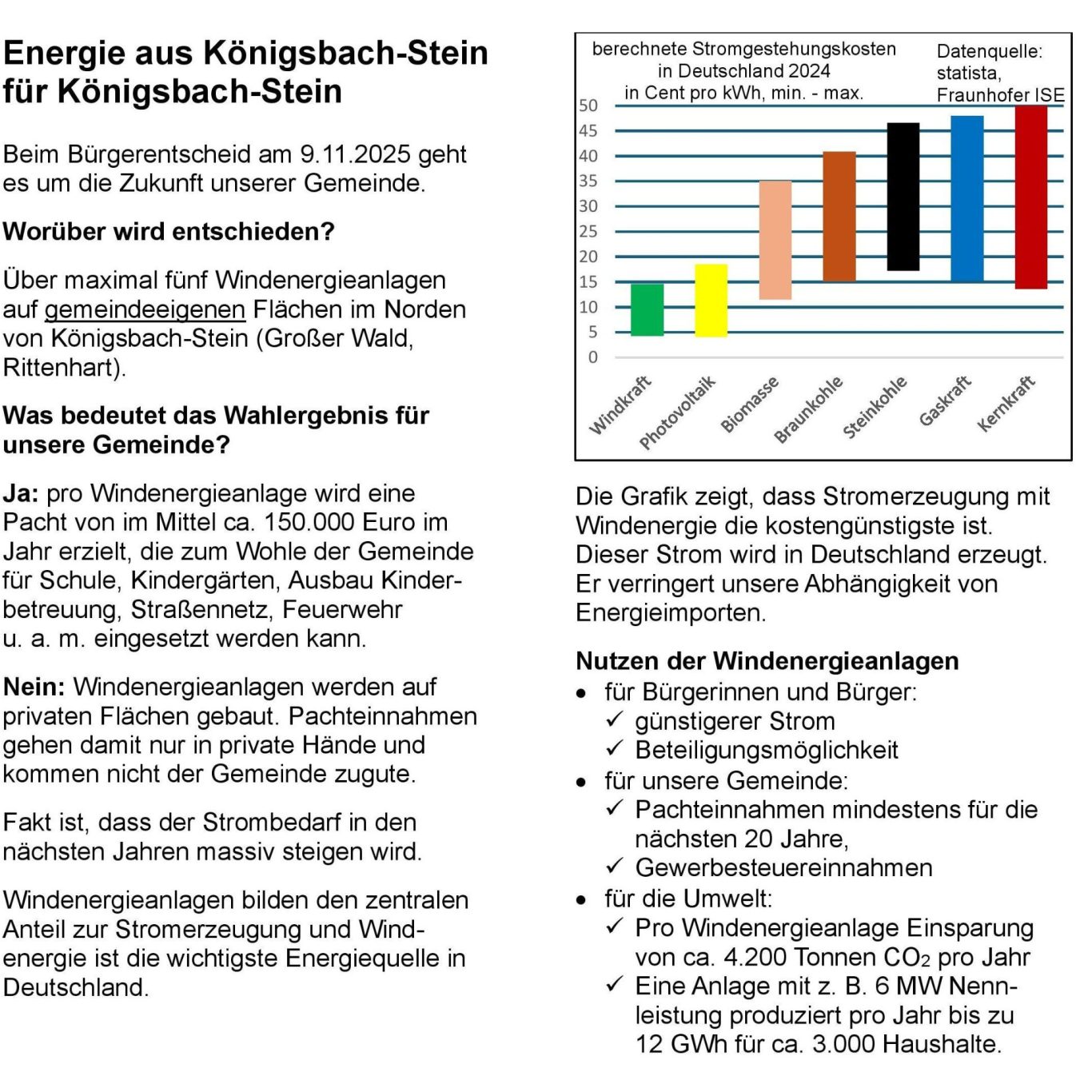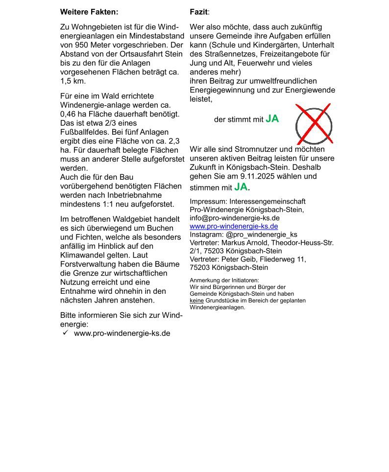 Als Bürger:innen aus Königsbach-Stein, die sich für eine nachhaltige, günstige und sichere Energieversorgung einsetzen. Wir unterstützen auch Besitzer privater Flächen!